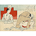 GEISHA IN ORANGE KIMONO ADMIRING A SAMURAI